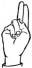 На ћирилици написано МИЉАН РУЧНОВ састоји се из 11 слова [?]. Исписано ћириличном једноручном азбуком за глувонеме: